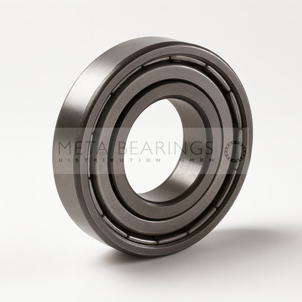 Die Laufbahnen sind präzise bearbeitet und auf geringe Reibung sowie ein sauberes Anlauf- und Abklingverhalten abgestimmt. Ein Stahlblechkäfig führt die Kugeln ausgewogen und stabilisiert das Laufverhalten. Gefertigt aus Wälzlagerstahl bietet es eine belastbare, verschleißarme Laufbahnoberfläche. Beidseitige berührungsfreie Stahlblechdeckscheiben halten leichten Schmutz fern und reduzieren Fettverlust; das Lager ist werksseitig gefettet. Maß- und Lauftoleranzen entsprechen der normalen Toleranzklasse PN nach ISO 492. Das Lager arbeitet im Temperaturbereich von -20 bis +120 °C.